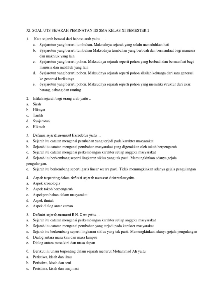 Soal uts sejarah peminatan kelas 11 semester 1. Maybe you would like to learn more about one of these? Check spelling or type a new query. We did not find results for: