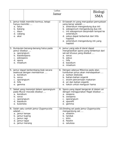 Latihan Soal Biologi Kelas 10 Bab Fungi Kurikulum 2013 / Soal Evaluasi Bab Jamur Fungi Kelas X Sm - Materi biologi kelas x bab v.